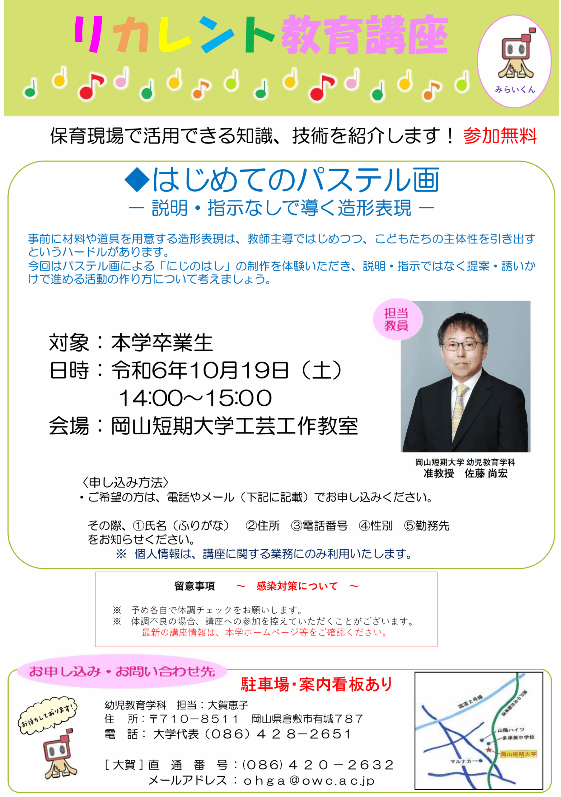 リカレント教育講座「◆はじめてのパステル画-説明・指示なしで導く造形表現-」を実施します。奮ってご参加ください。