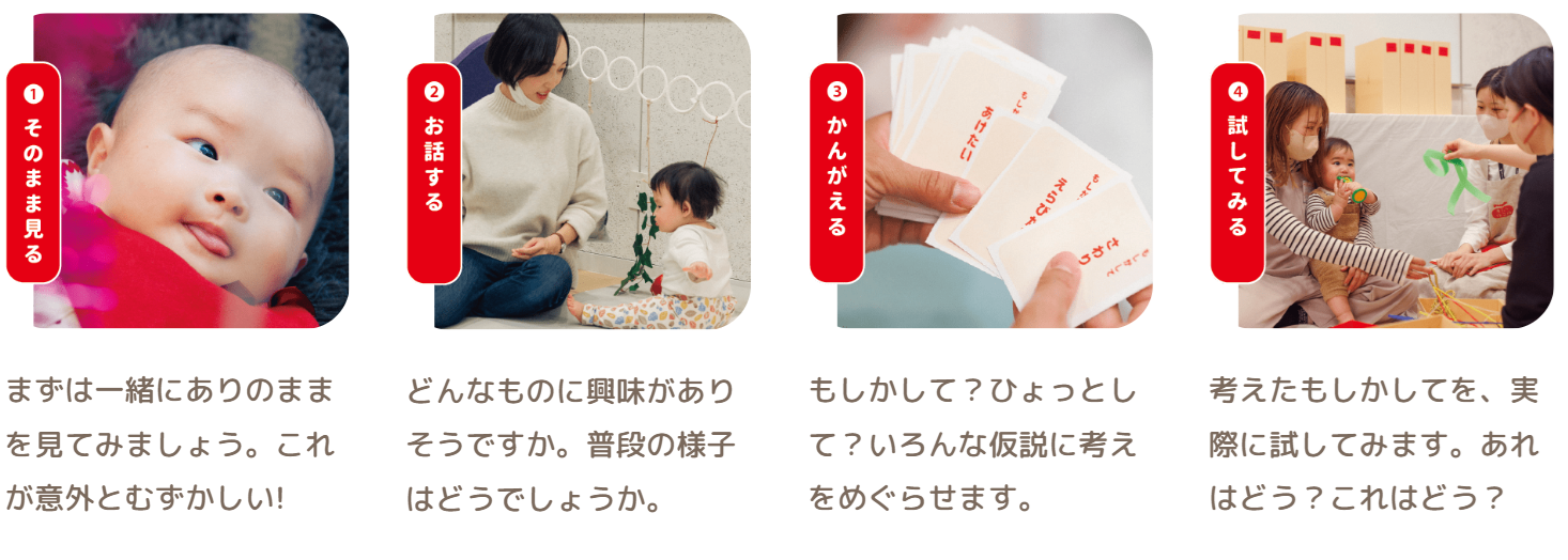 ピープルが「赤ちゃん観察」で大切にしている、赤ちゃんの好奇心を全力で受け止めて、その行動を「おもしろい!」「すごい!」と楽しむ視点。