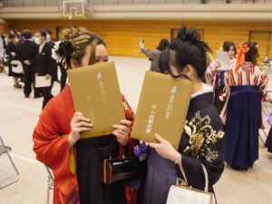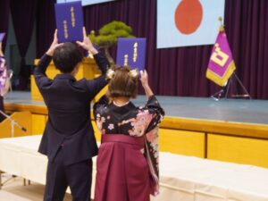 卒業生たちは、卒業証書 学位記をはじめ、4年間または2年間で学修した多くの免許・資格等を受け取り、晴れ晴れとした笑顔で、巣立っていきました。