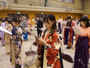 本学体育館で卒業証書 学位記授与式(卒業式)が行われました。