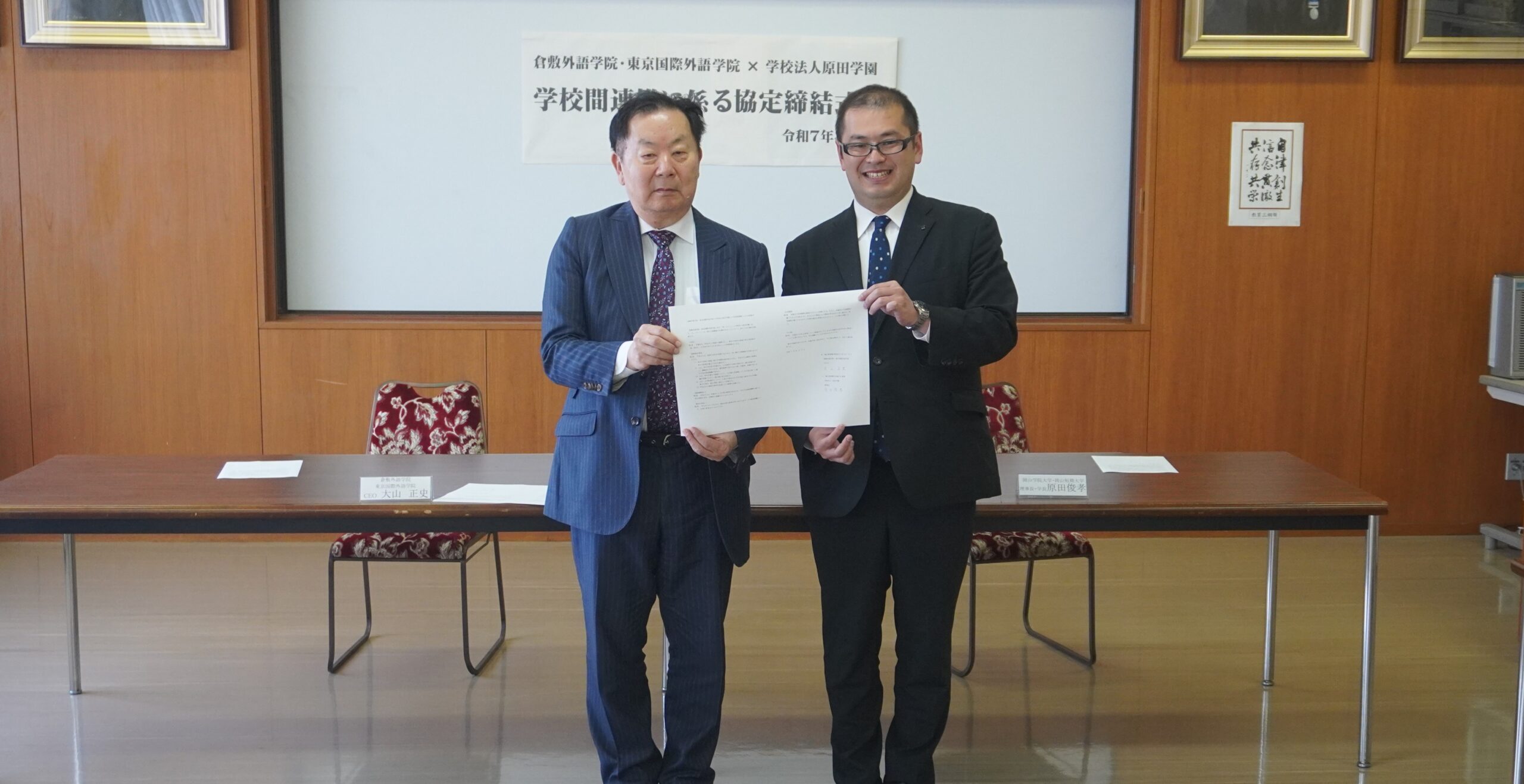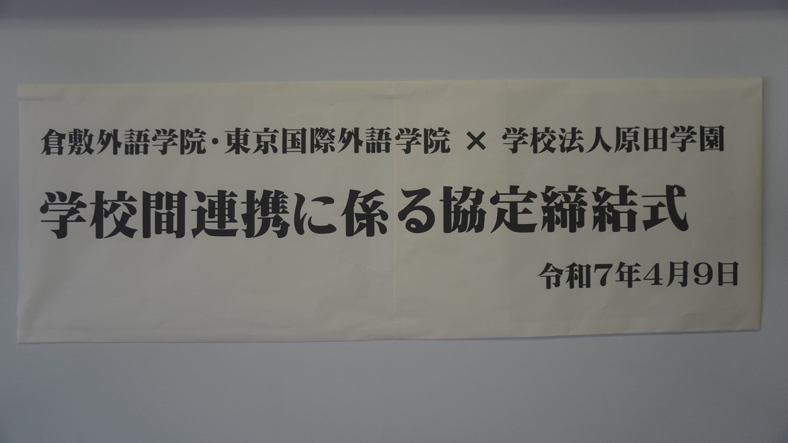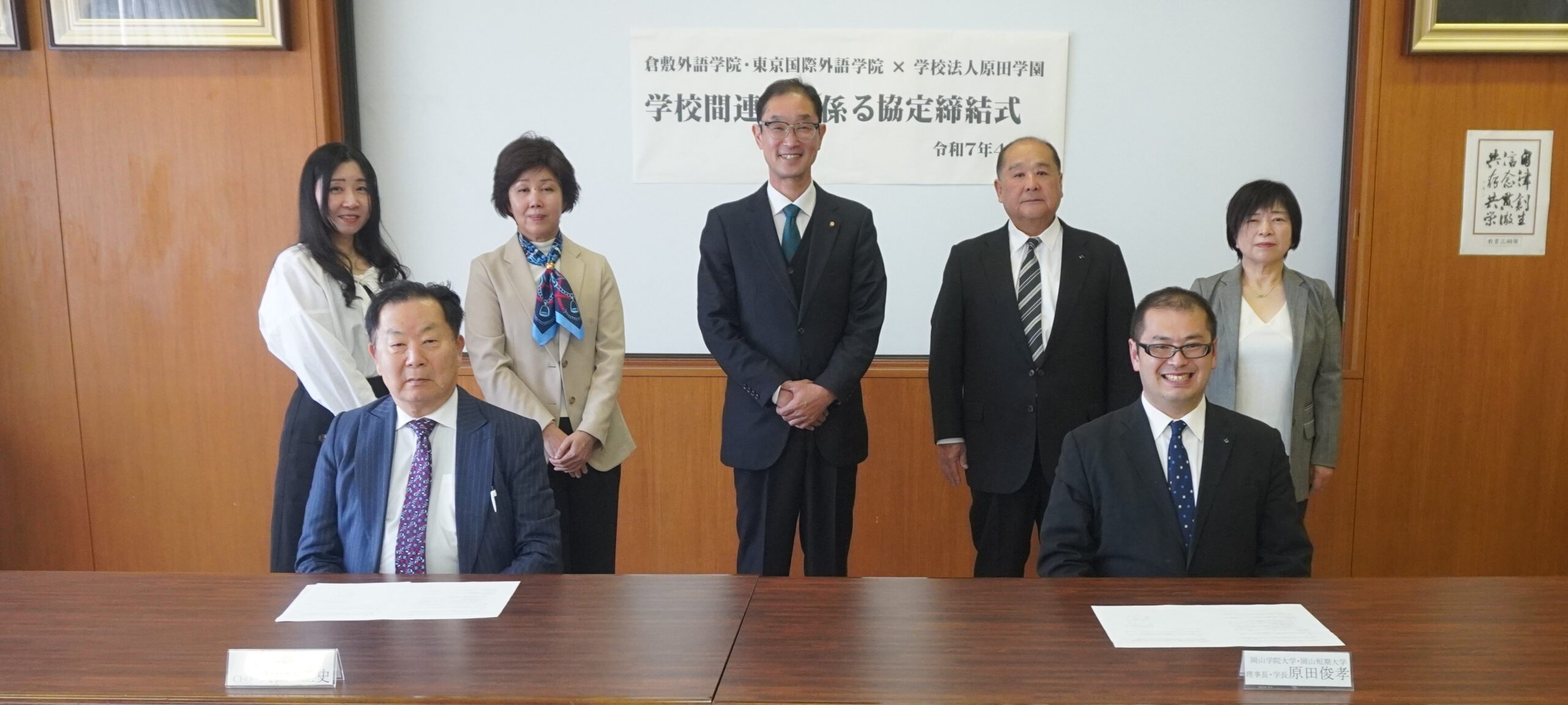 令和7年4月9日(水)、倉敷外語学院・東京国際外語学院と岡山学院大学・岡山短期大学を運営する学校法人原田学園は、相互の学校の発展に係る学校間交流、入学者受け入れなどを目的とした連携協力協定を締結しました。