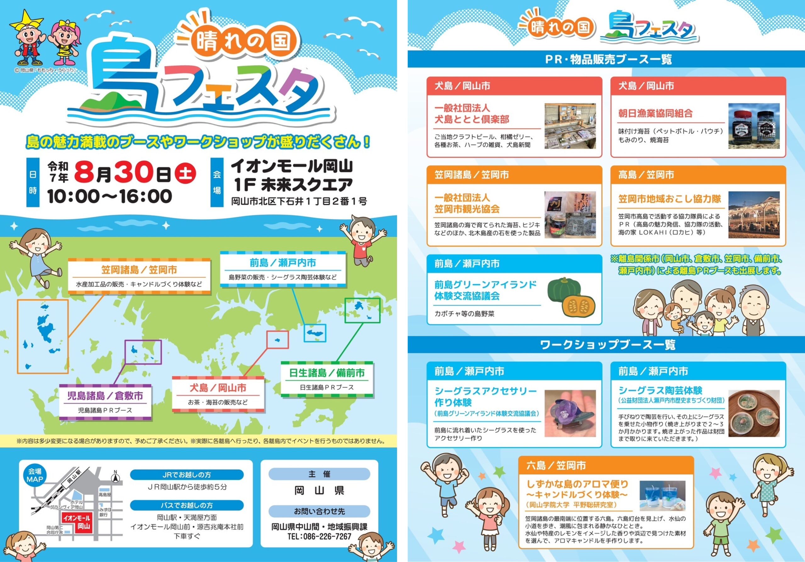 岡山学院大学デジタル生活学部フードマネジメント学科では、岡山県内の島しょ地域の魅力を広く発信するイベント「晴れの国 島フェスタ in イオンモール岡山」に参加いたします。