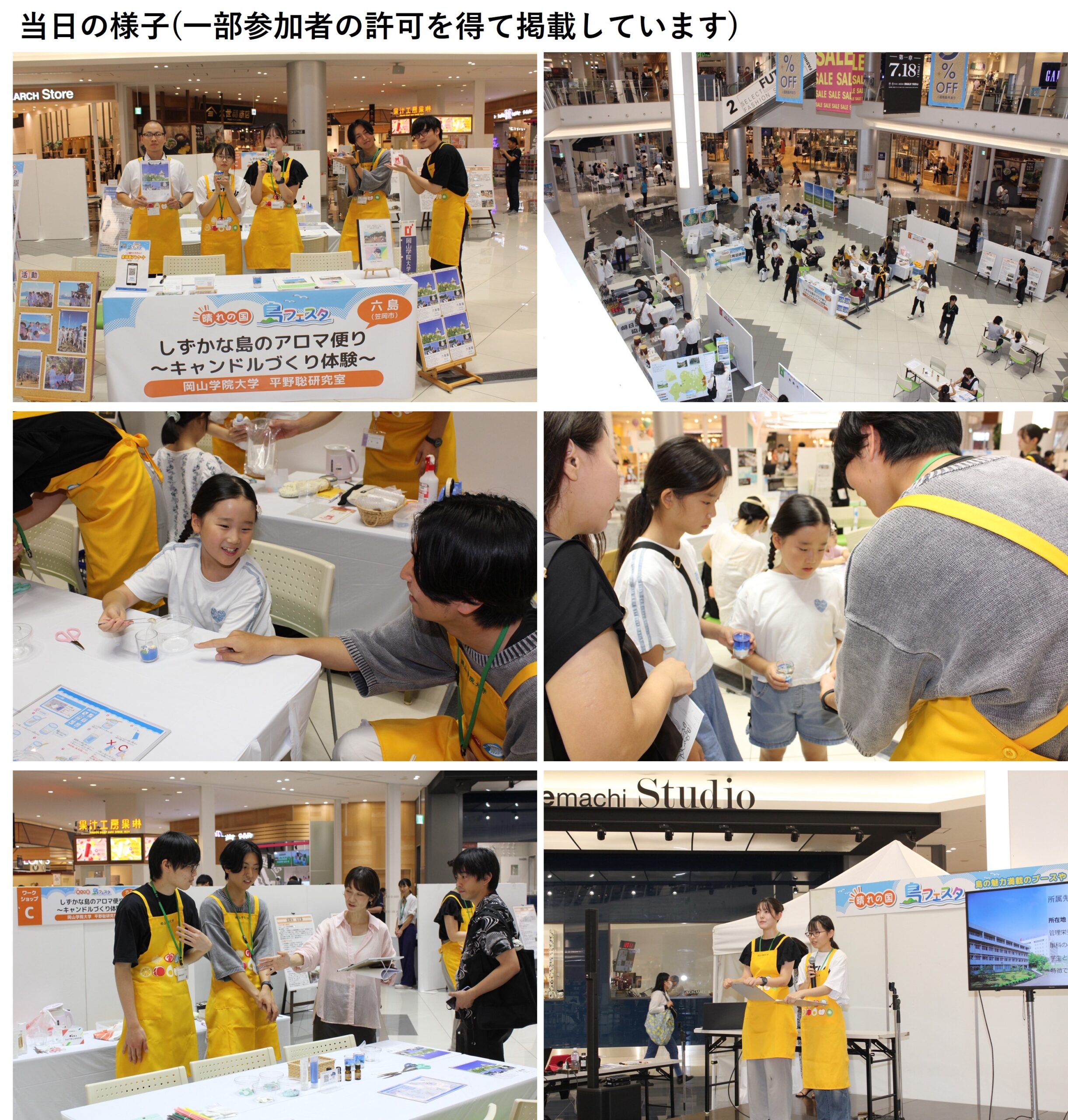 岡山学院大学デジタル生活学部フードマネジメント学科は、2025年8月30日(土)にイオンモール岡山で開催された「晴れの国・島フェスタ」に参加し、笠岡諸島・六島の魅力を伝えるブース展示と体験型ワークショップを実施しました。
