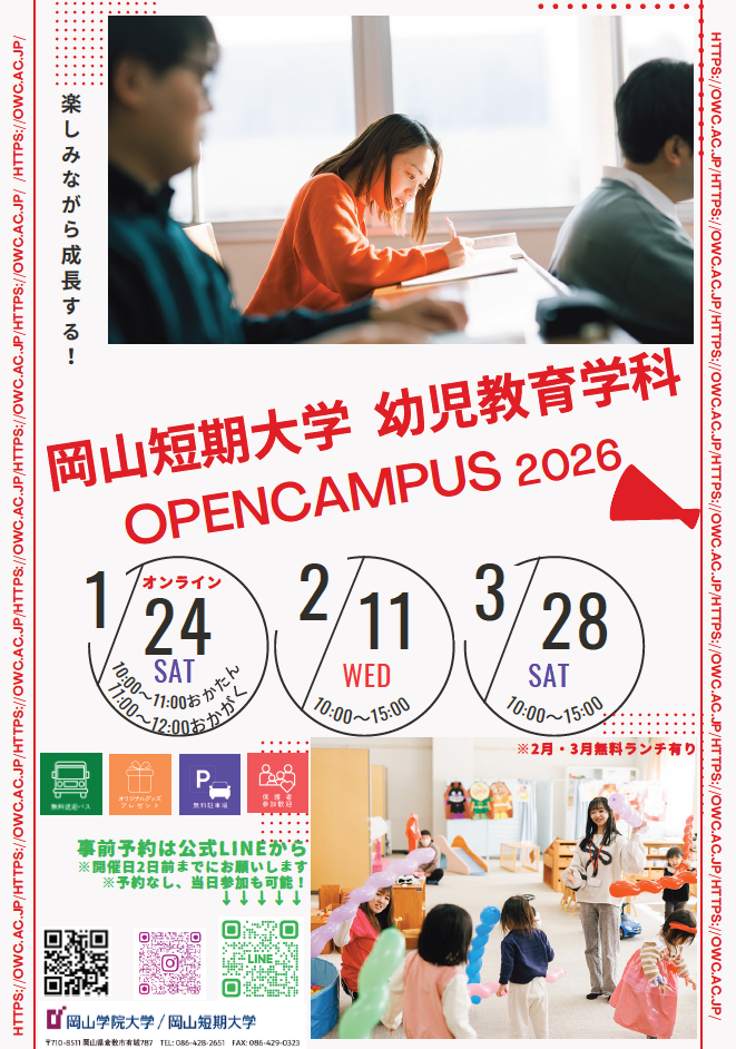 岡山短期大学の2026年1~3月に開催されるオープンキャンパスをご案内します.