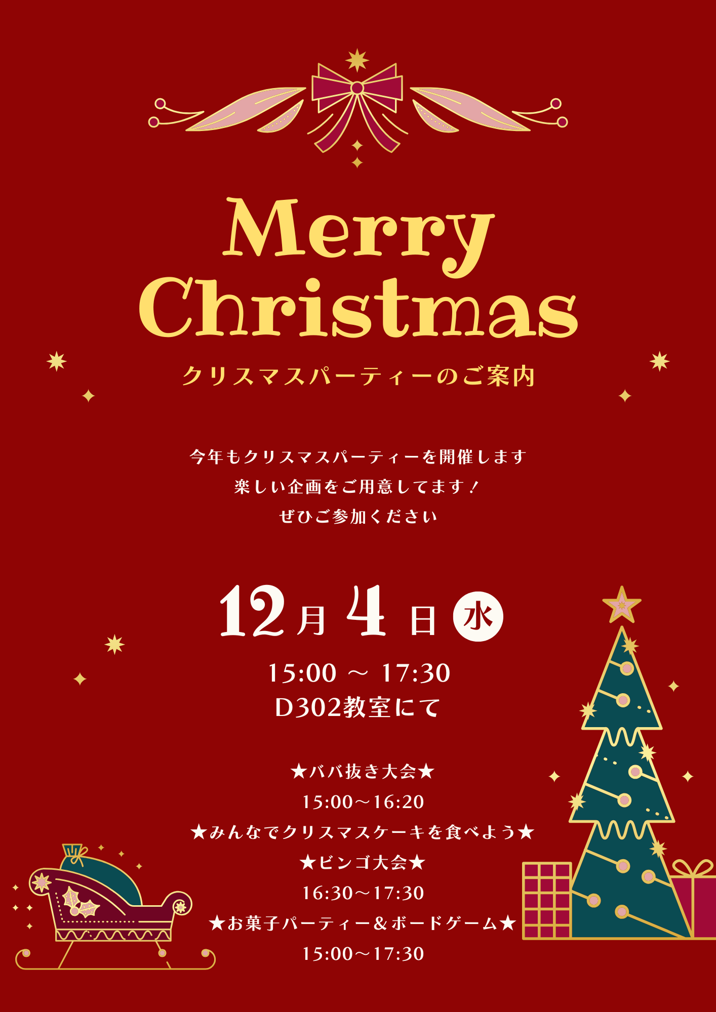 (学内限定)クリスマスパーティーを開催しました。