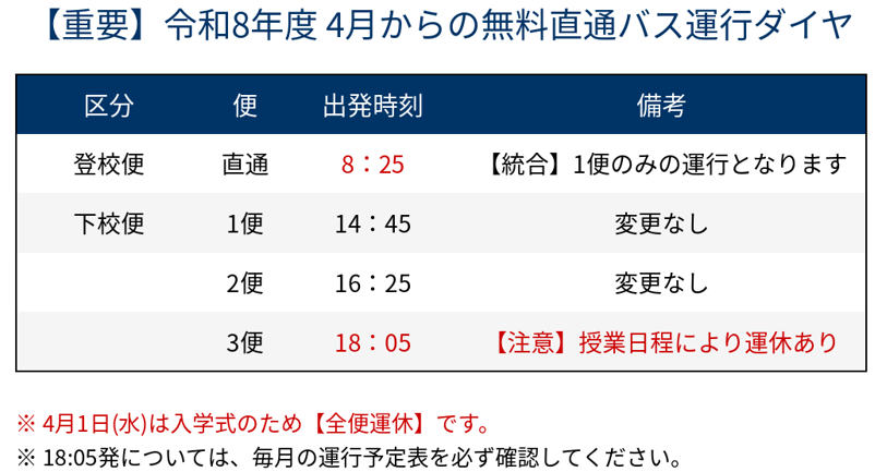 【重要】令和8年4月より運行時刻が変更となります。