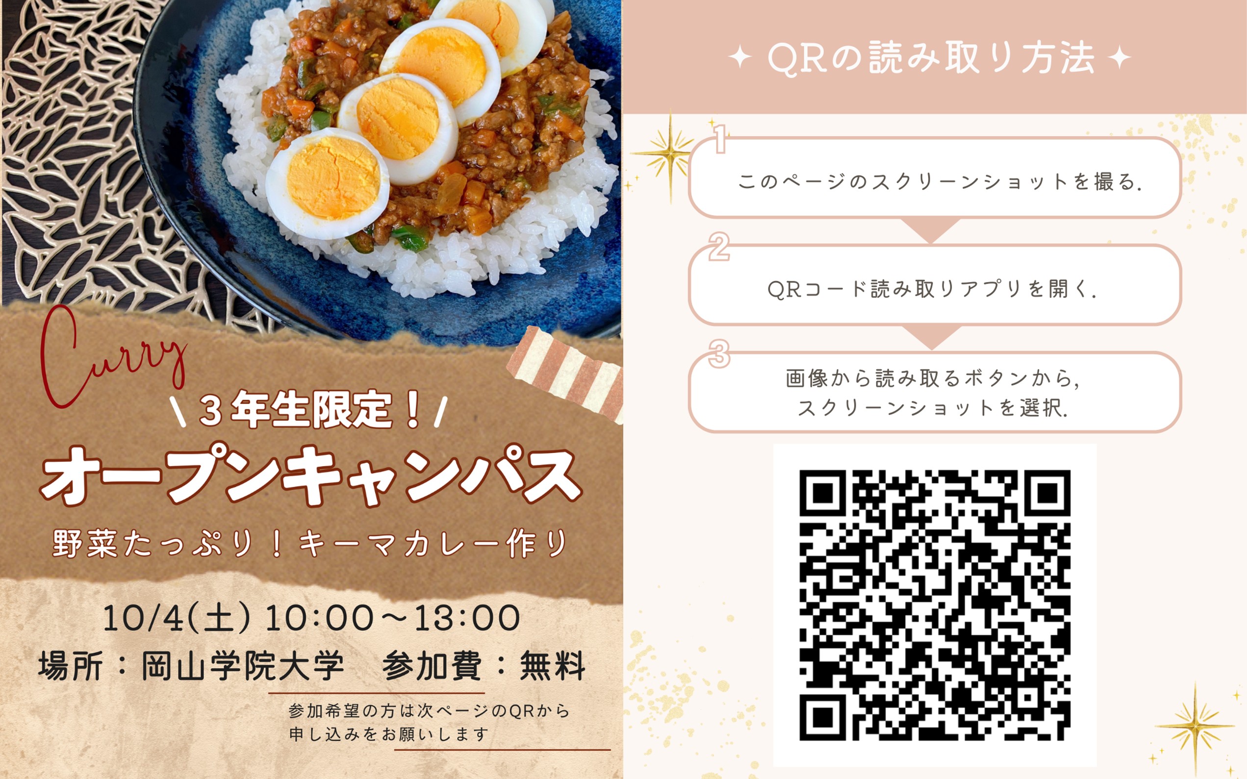 岡山学院大学デジタル生活学部フードマネジメント学科では10月4日(土)に高校3年生限定オープンキャンパスを開催します.