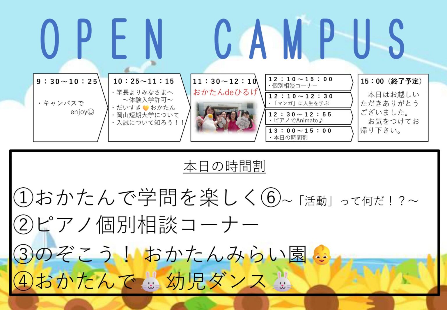 ・初めて大学のオープンキャンパスに参加して少し不安な気持ちでしたが個人的にはとても楽しめました!ありがとうございました!