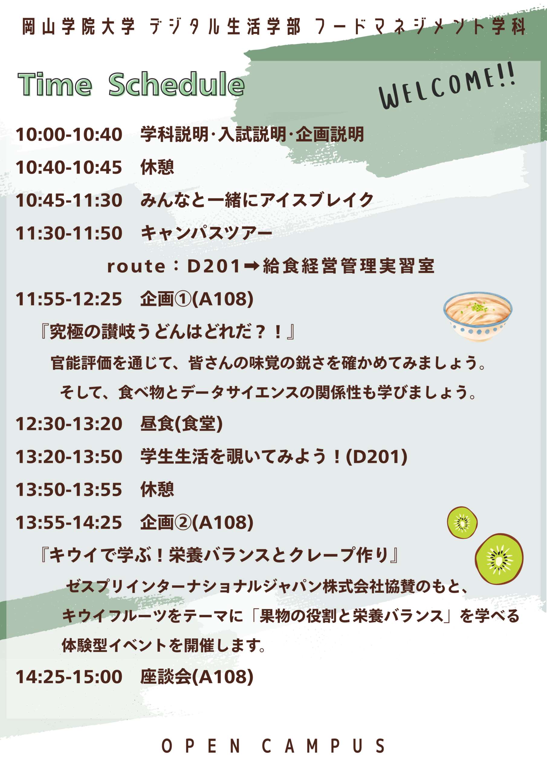 過去のOC(岡山学院大学)【終了しました】9/23(火/祝)来学型オープンキャンパス2025.09.23 参加者からのご感想 ・初めて来たけど先生達や先輩方が温かくて、雰囲気がとても良かったです。他の大学も見たけど、家も近く、一番校内も良く、受験できるのであれば、ここが一番かなと思いました。 ・実習と連動された感じが分かりやすかったので楽しめた。