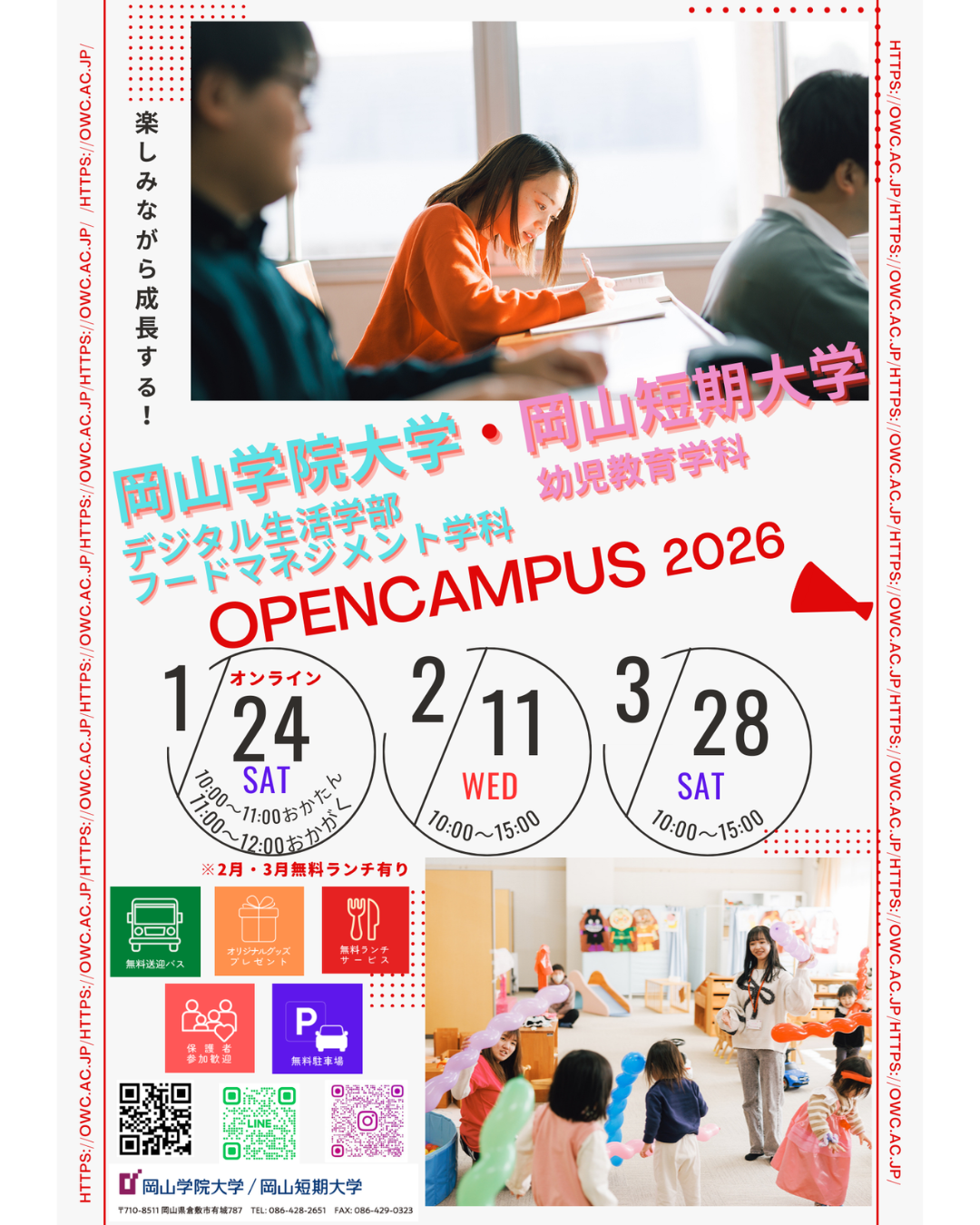 岡山学院大学・岡山短期大学の2026年1~3月に開催されるオープンキャンパスをご案内します.