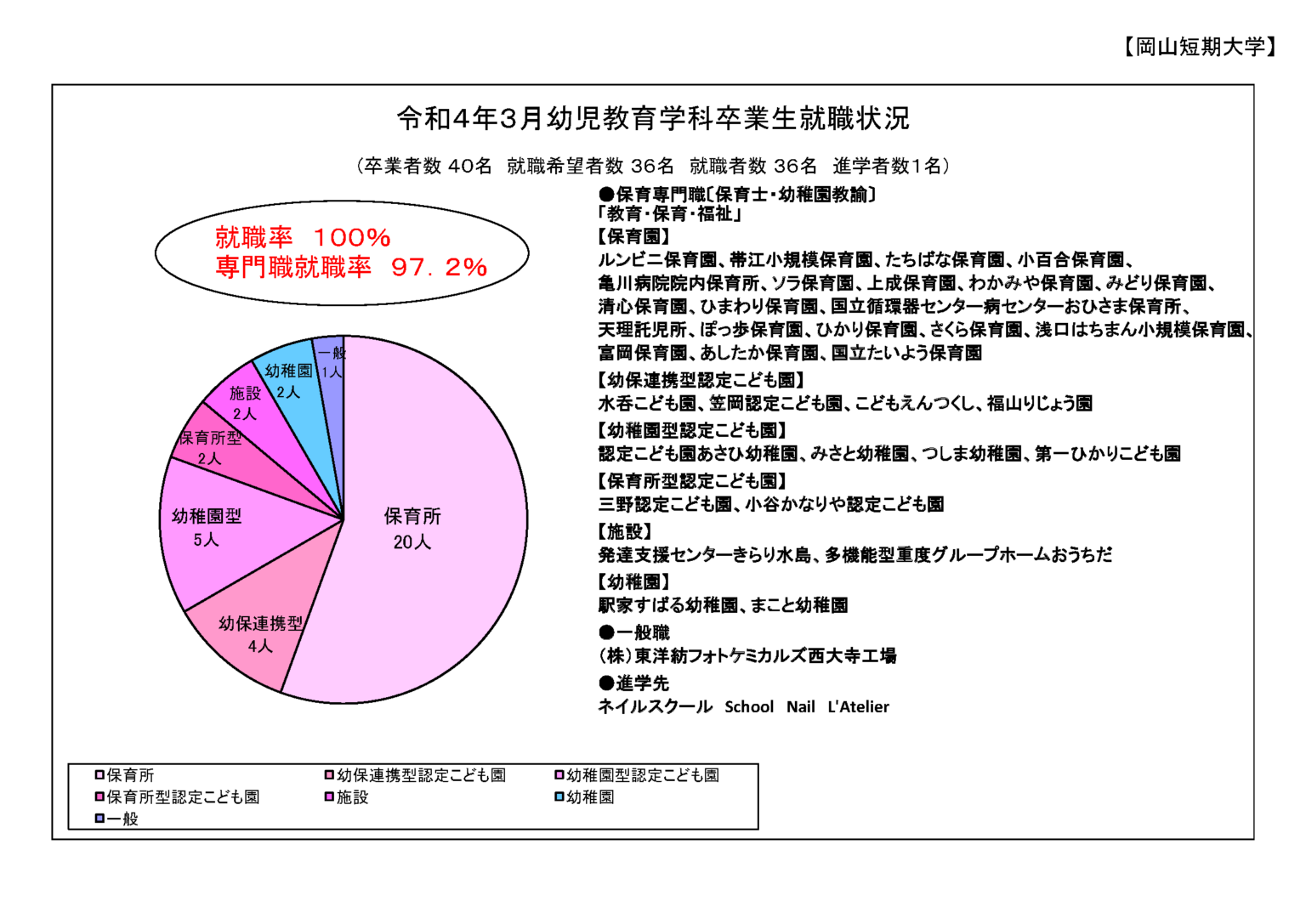 卒業者数40名 就職希望者数36名 就職者数36名