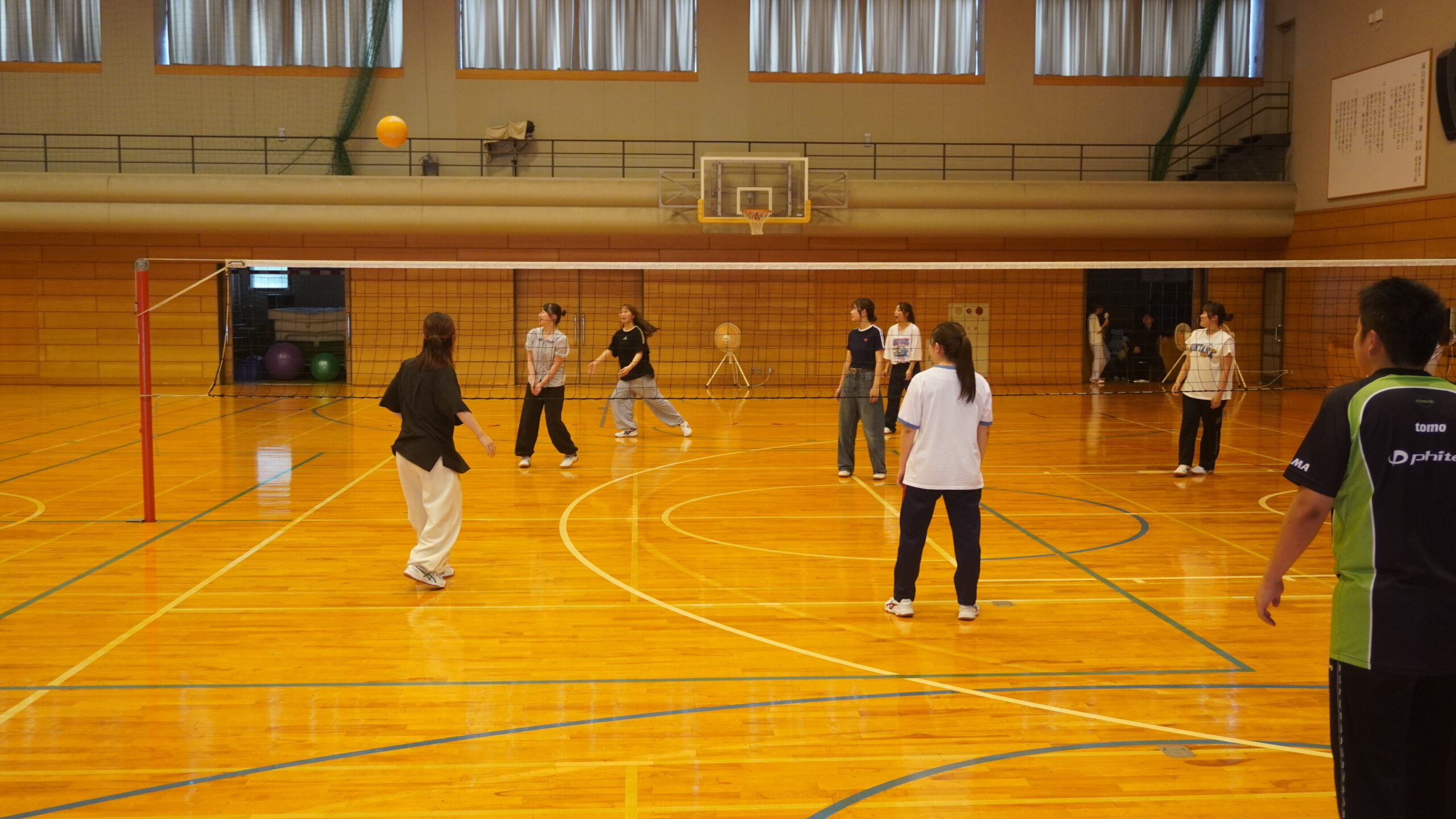 テニスやバドミントン、バスケットボールなどに取り組み、ルールやマナーを大切にしながら、基礎的な技術や体力の向上を目指しています。また、活動を通して積極性や協調性、思いやりの心も育てています。