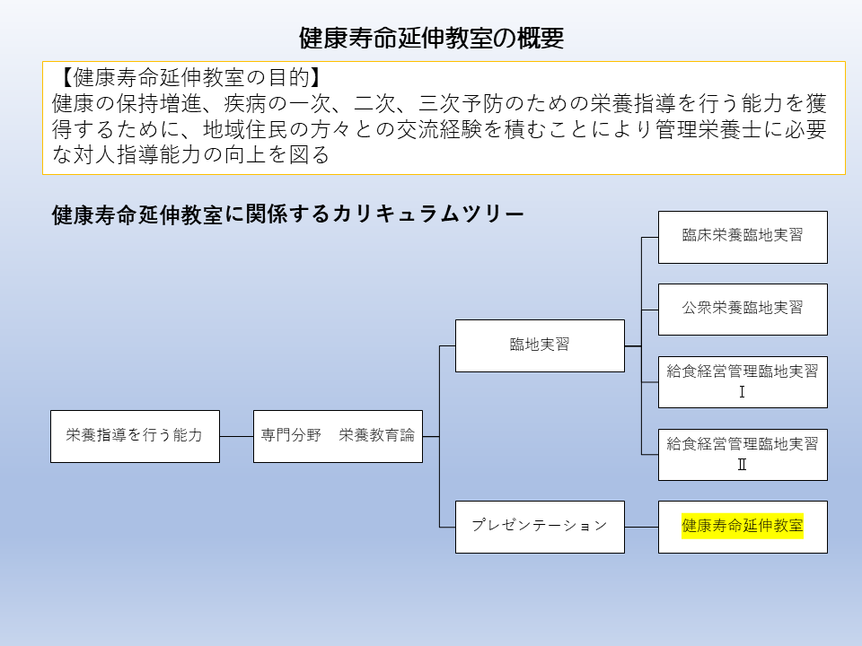 数量的スキルやICT リテラシーでSociety 5.0 時代のビッグデータを管理・活用し、円滑なチームワーク、リーダーシップ、対人コミュニケーションで、Society 5.0 時代のビッグデータを管理・活用し、個人のヘルスプランを創案し、健康改善につなげるマネジメント力を獲得する。
