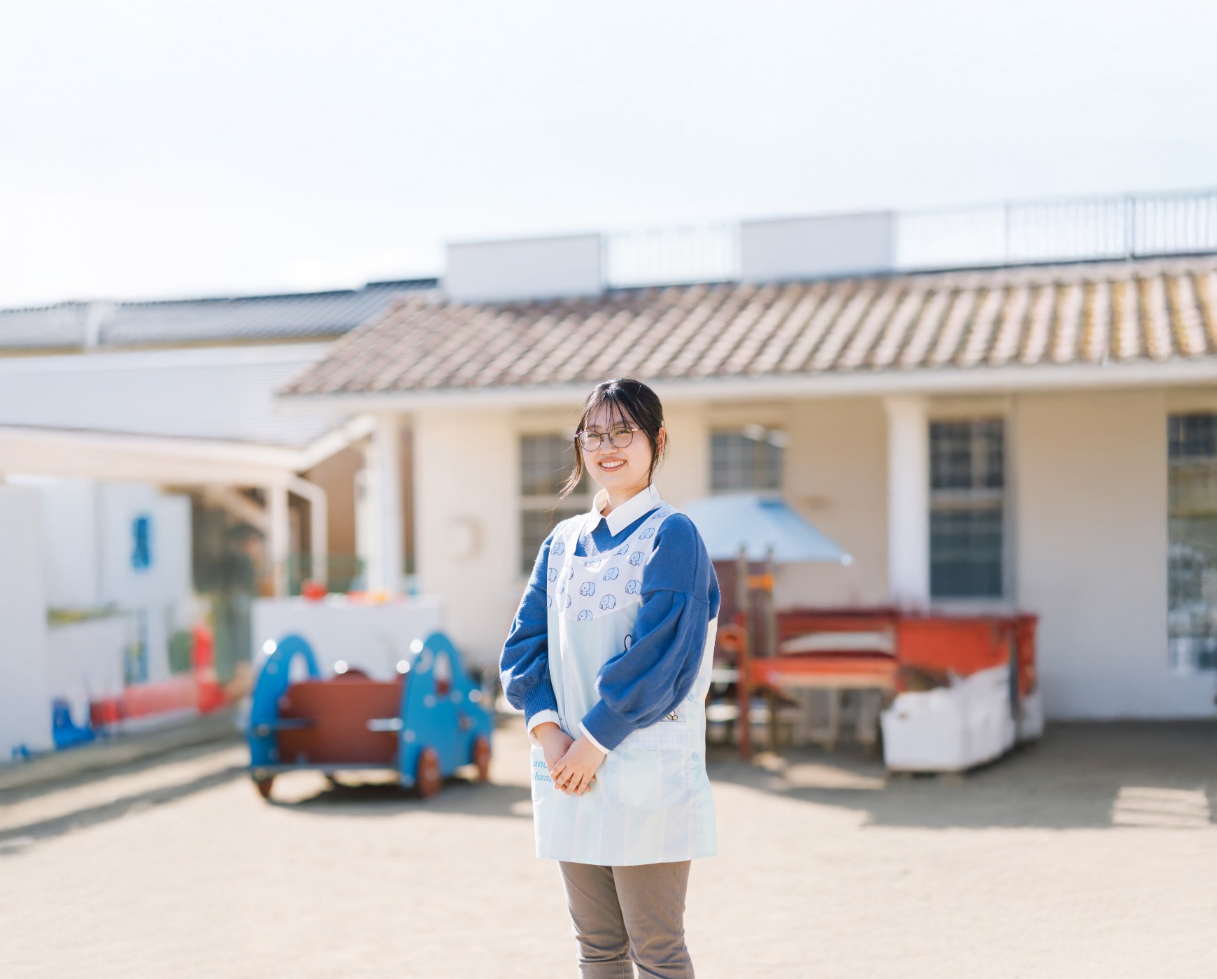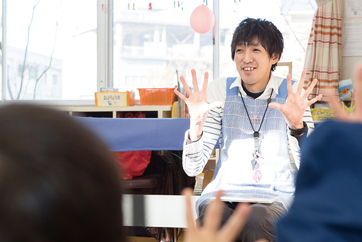 倉敷市の唐琴王子保育園勤務です。今年度は、決まったクラスに入らず、0歳〜5歳児の全クラスをフリーに見ています。クラス担任の補助としての役割を果たしながら、園の行事の企画・準備・進行なども行っています。保育士は大変な職業ですが、実際に現場に立つと、これから求められる大事な職業だと実感します。