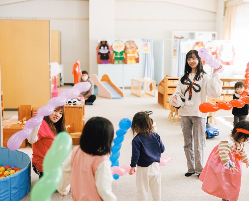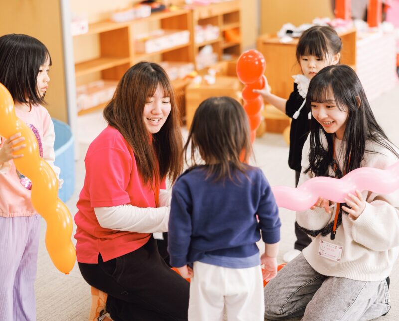引っ越しばかりだった幼少期に先生から友達づくりのアドバイスをいただいた経験があり、僕もこうした嬉しい気持ちを子どもの心に育んであげたいと思っています。「楽しく頑張る、頑張ればできる」というおかたんでの学びを活かし、子どもと共に成長できる保育者をめざします。
