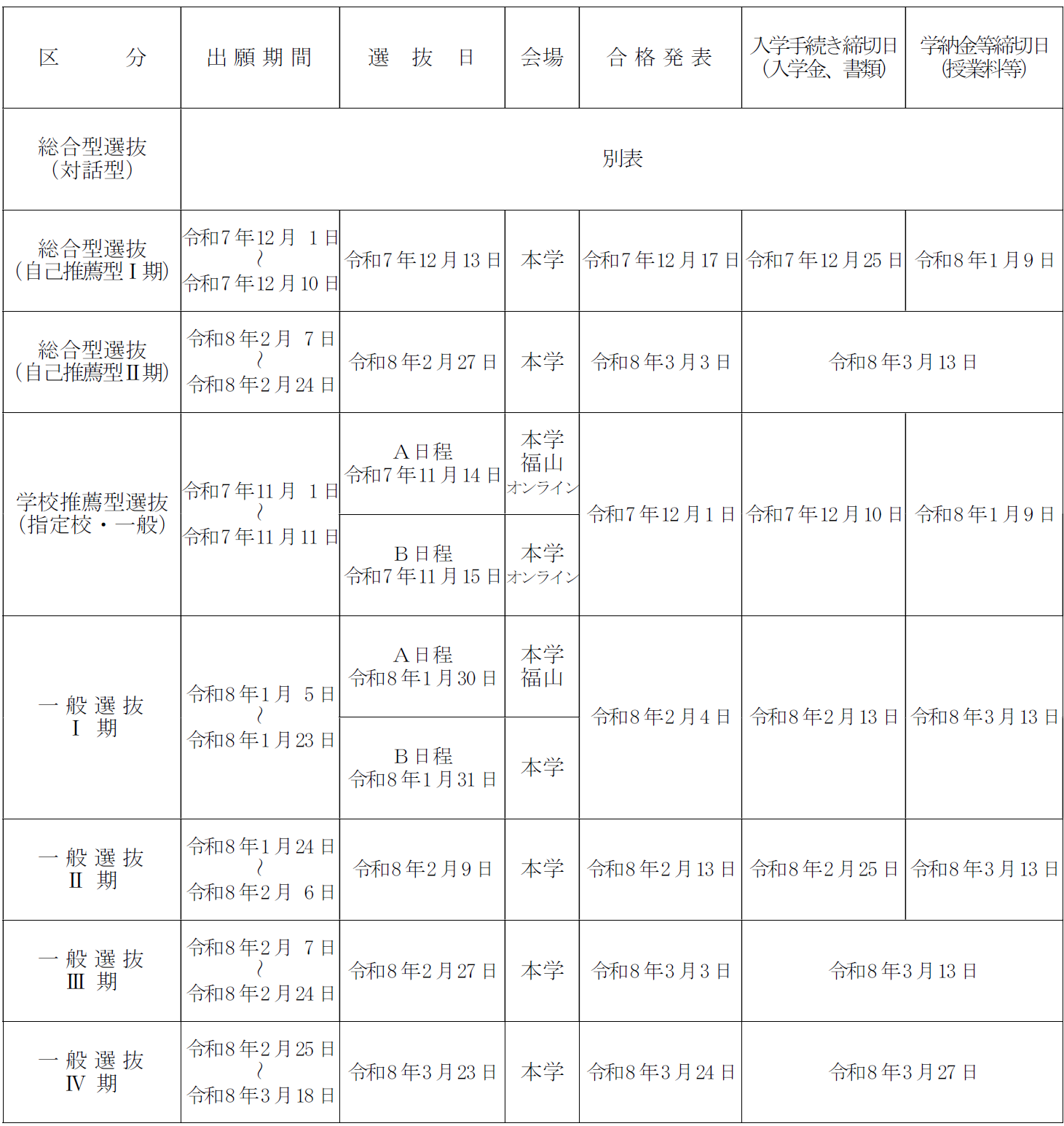 一般選抜Ⅰ・Ⅱ・Ⅲ・Ⅳ期