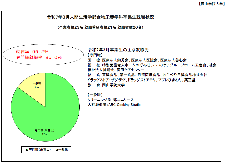 卒業者数23名・就職希望者数21名・就職者数20名(令和7年5月更新)