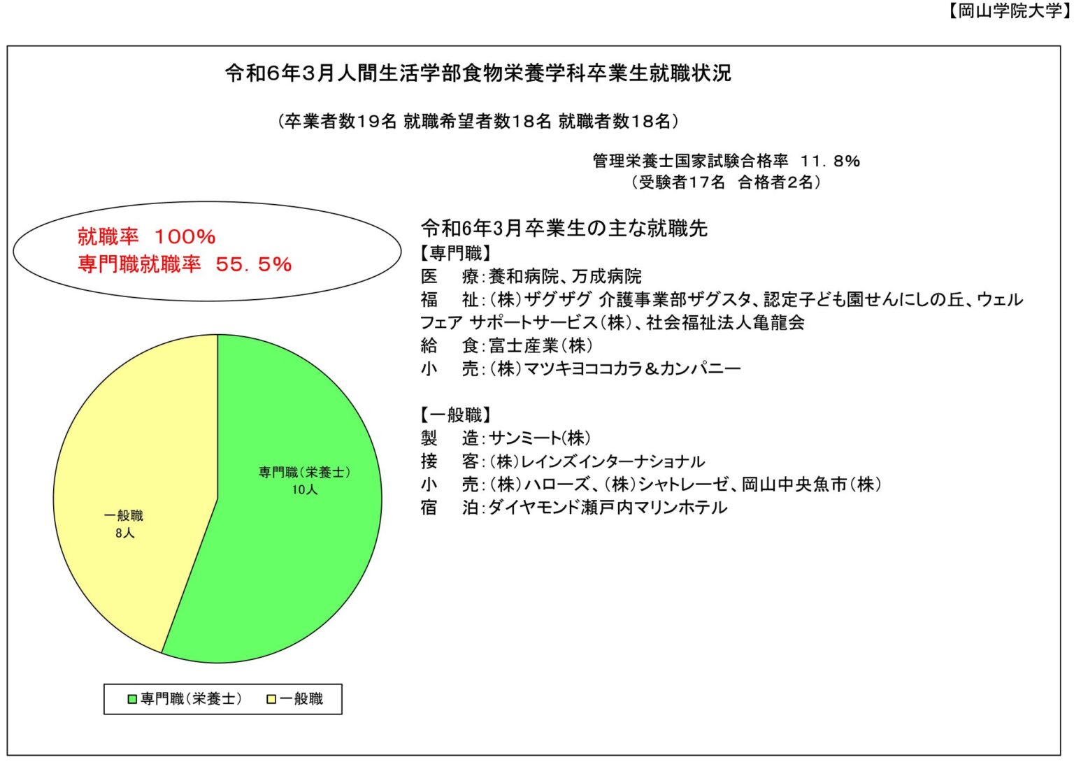 | 就職決定者数 | 8人 | 10人 | 18人 | 100% | |